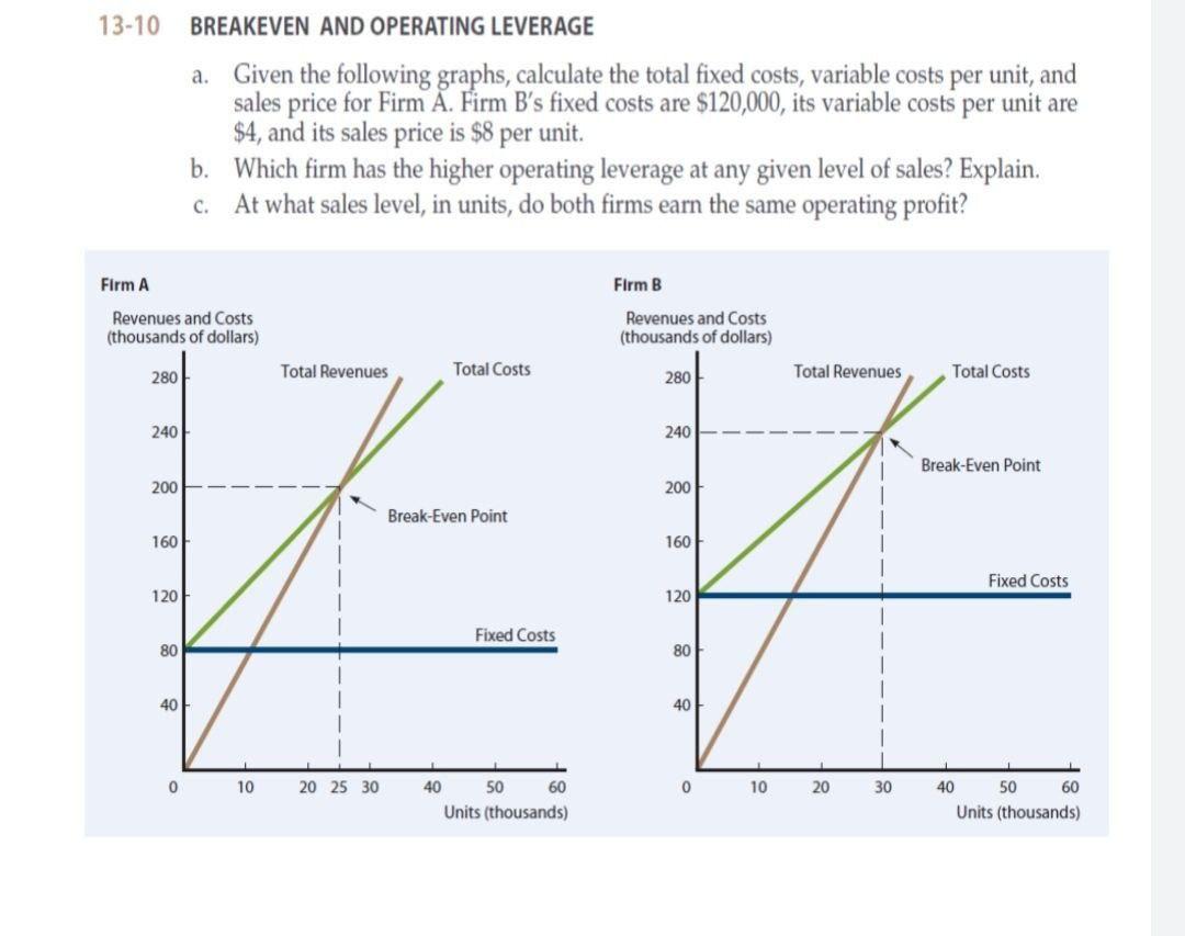 Solved 1310 BREAKEVEN AND OPERATING LEVERAGE a. Given the